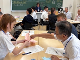 それまで教室形式の講演で無表情だった参加者が、三好スーパーバイザーのデモンストレーションを交えた説明で表情が様変わりしました。
